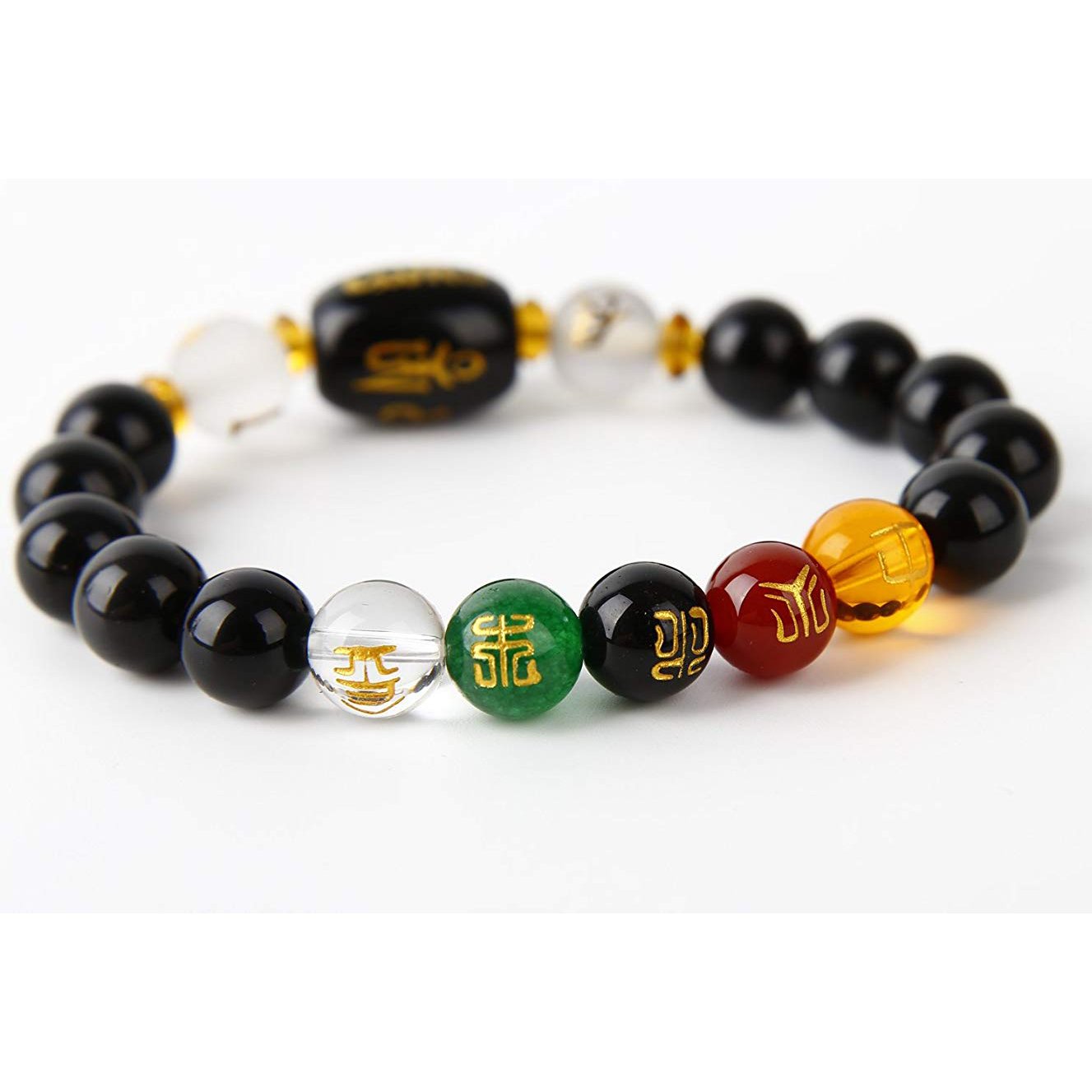 The Symbol on the beads are Five feng shui elements: wood, fire, earth, metal, and water. It embodies wisdom, new beginnings luck and wealth.